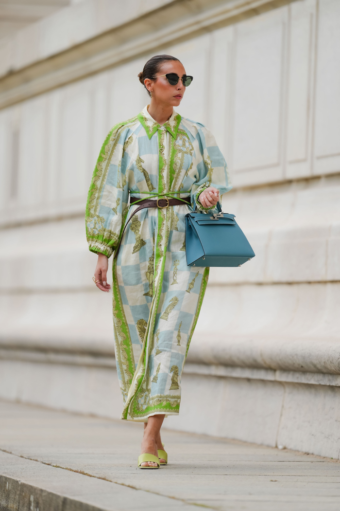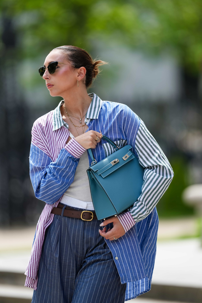 Stripes on stripes have entered the chat. Give the classic button-down and slacks combo a fun upgrade by leaning into a matching print vibe.  It’s polished, playful, and perfect for any occasion. Finish the look with sleek sunnies and a colorful bag, and voilà: your new go-to outfit of the season is served.
