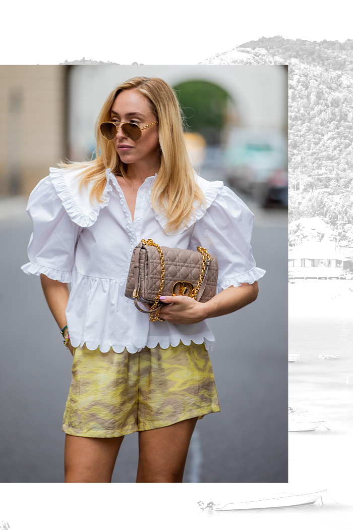 If we’re honest, the travel day look is just as important as the rest. Set the tone for your trip with a fashion-meets-function matching sweat set and a pair of statement sneaks. Don’t forget an oversized tote to store all your flying essentials!