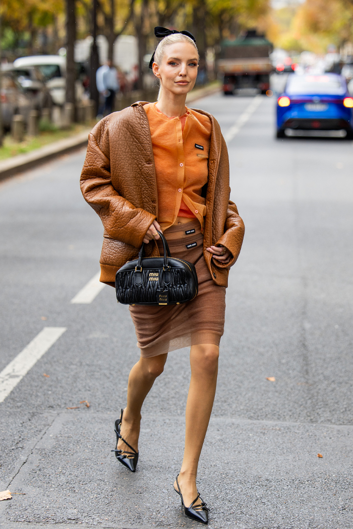 Browns, taupes, and tans are the unbeatable tones to mix and match or even wear alone. Try a textured look and style a sheer skirt with a leather jacket for an elevated ‘fit guaranteed to be eye-catching.